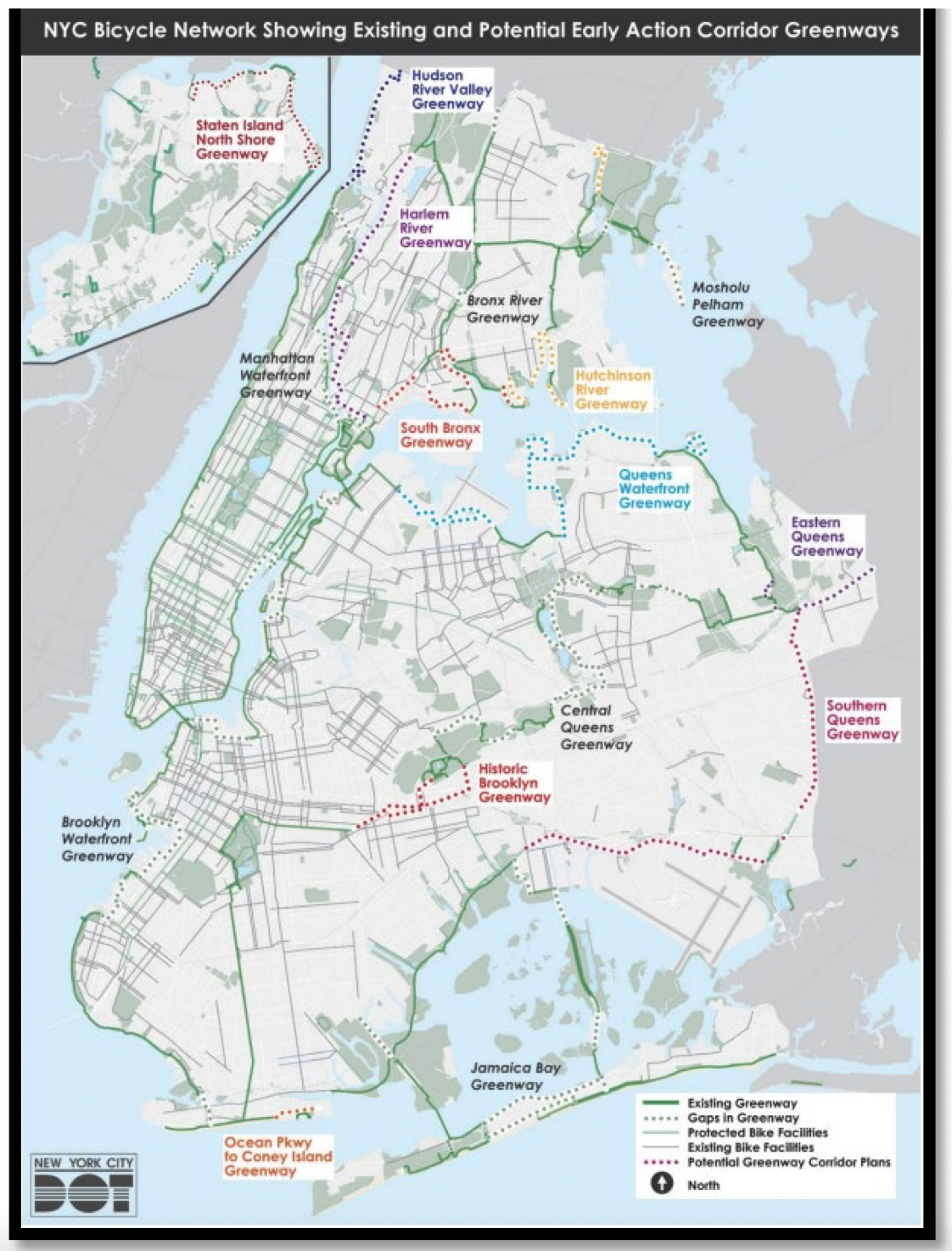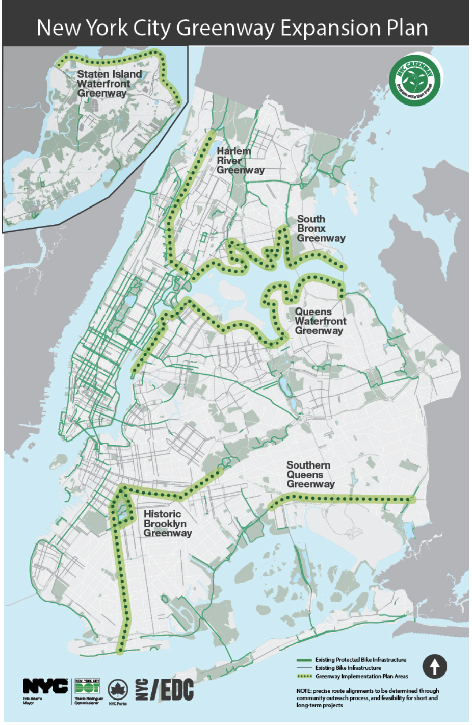 - 10 new miles in northern Queens (to connect six miles of existing greenway)