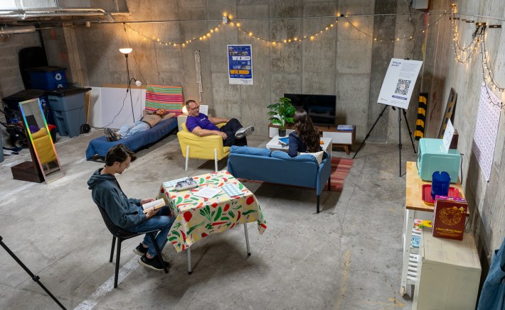 Our friends at Open Plans know the answer — and to demonstrate how much more housing New York City could have, the public policy advocates turned two parking spaces in a Williamsburg garage into a surprisingly spacious studio apartment, complete with a bed, a den, a kitchen area and a nook or two.