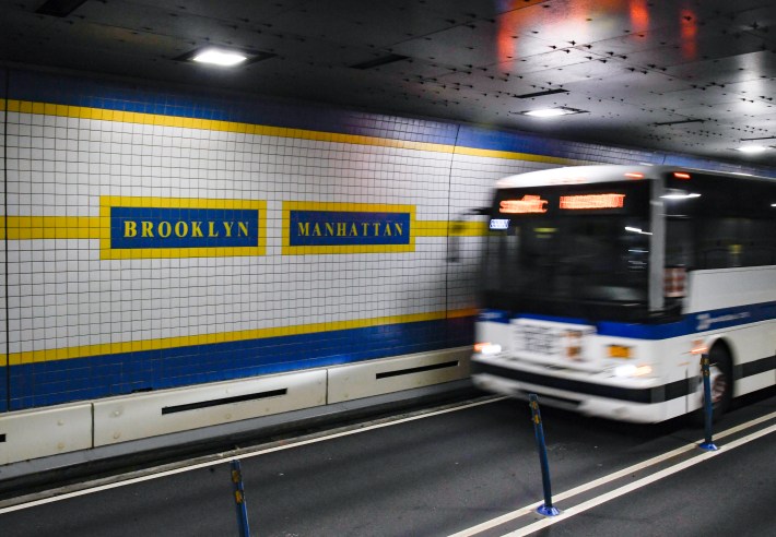 Now, an MTA spokesperson claimed that “congestion challenges” in the tunnel and in downtown Manhattan made it more “efficient” for Red Hookers to transfer from a bus to a train — even though the closest train, the F, doesn’t go to Lower Manhattan. The 4 train does serve the Financial District, but it can only be caught all the way at Borough Hall, a long bus ride from Red Hook.