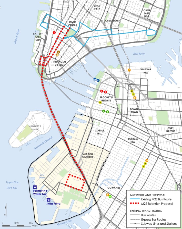 The city planners proposed extending the M22, which travels crosstown between the Lower East Side and Battery Park City.