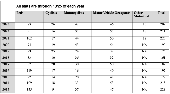 Overall pedestrian deaths are down so far this year, but the overall death toll on New York City streets is typical of the average year.