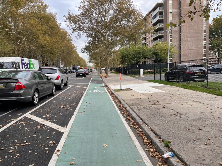 Whatever small drawbacks the bike lanes have, they provide undeniably calmer ride than other east-west corridors in the neighborhood like Sutter Avenue, Blake Avenue or (god forbid) Pitkin Avenue. They also provide another link to Fountain Avenue, a solid project that provides a safe connection to Shirley Chisholm State Park and the Belt Parkway greenway.