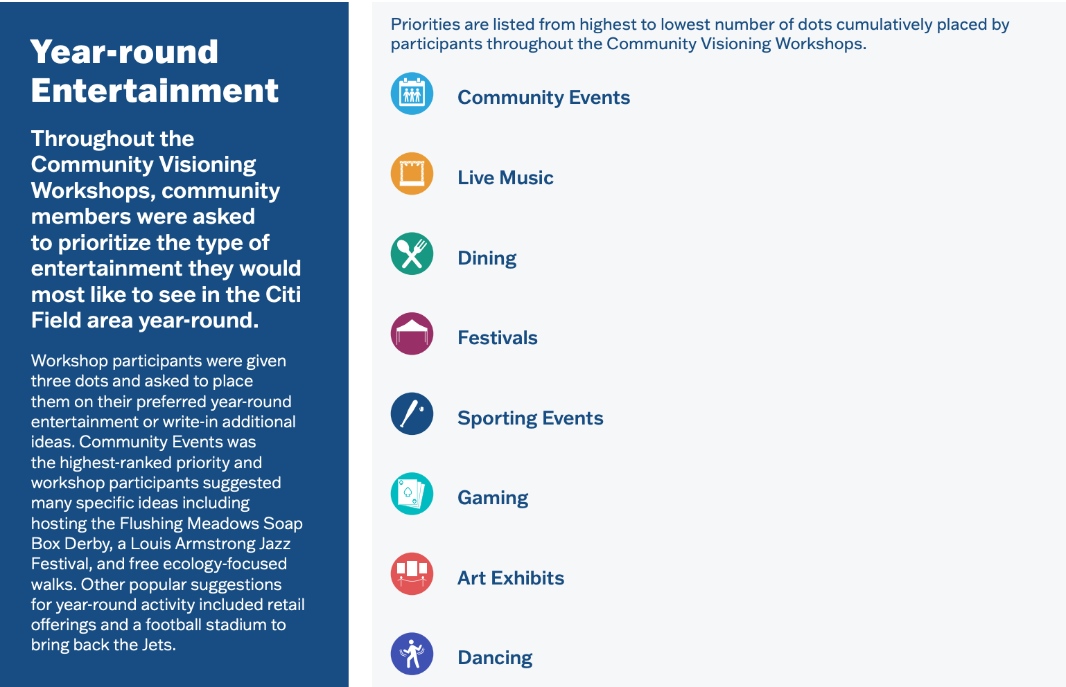 Visioning session attendees even ranked “bring back the Jets,” who have wandered in the football wilderness for over 50 years, as a more popular idea than a casino.