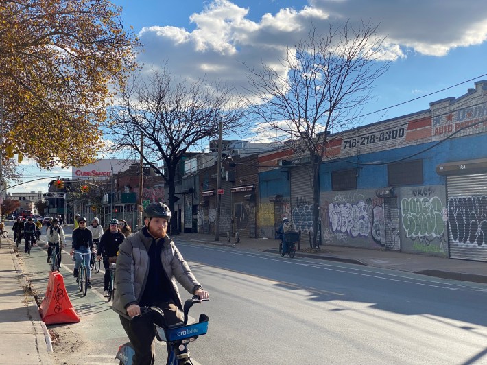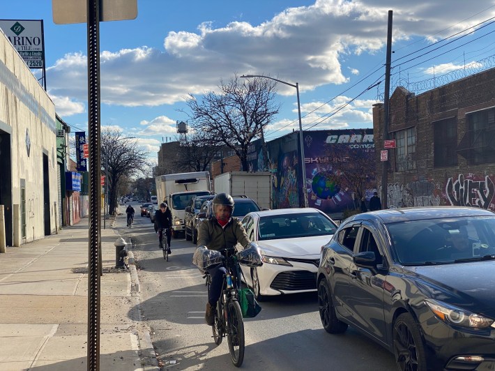 The road links industrial parts of Bushwick, Williamsburg and Greenpoint, and, thanks to the state-built Kosciuszko Bridge bike path, bring cyclists to and from Queens. The Department of Transportation held feedback sessions in the spring to improve safety, but officials have remained mum on upgrades for the corridor ever since, even after a cyclist was struck and killed by a trucker in May.