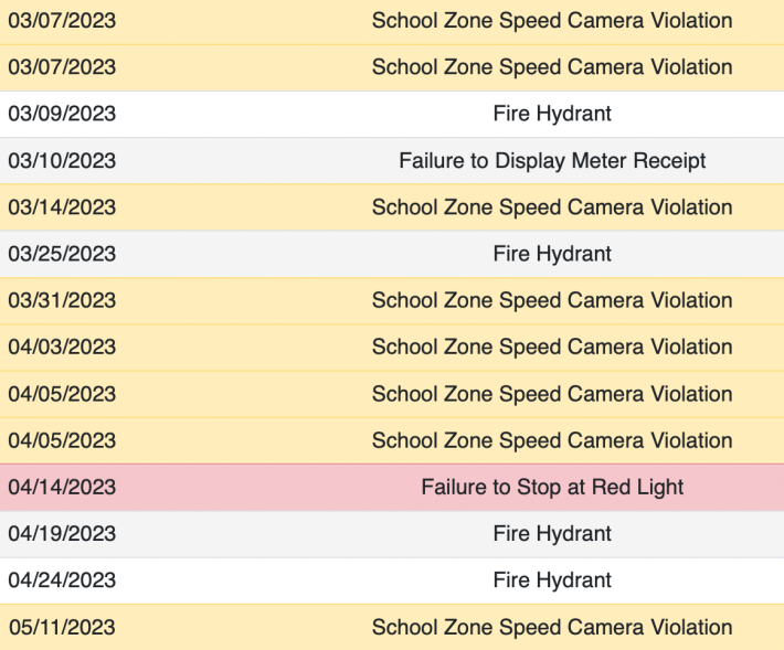 Until then, check this out. On April 27, 2022, the owner of the car with the license plate BIGMON, took the city’s safety course after racking up 49 camera-issued speeding tickets in the previous 12 months, according to city records. After taking the safety course, BIGMON did indeed reform his ways … for just a few days beyond the required six months of ticketless driving.