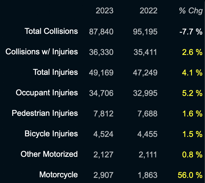 And fatalities are only a thin sliver of the story. Injuries from motor vehicles is soaring this year, according to the NYPD.