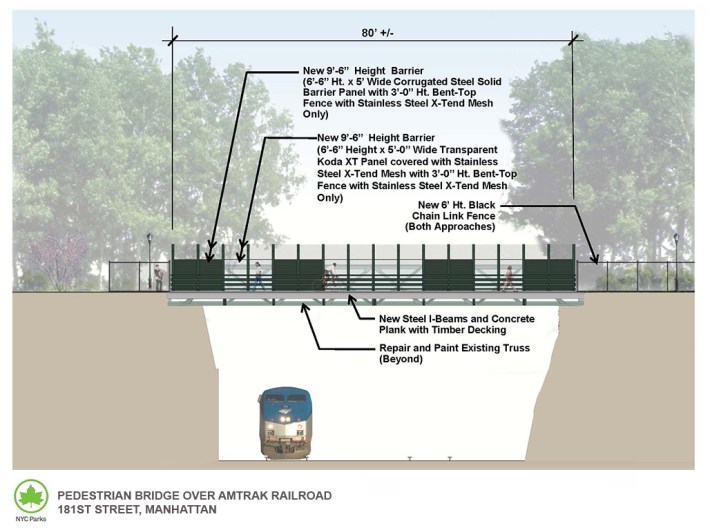 At some point after that, DOT took over the project. The latest round of design revisions will consider retaining access to the path and the adjacent park during the work, as well as passage of the railroad trains below, DOT spokeswoman Mona Bruno told Streetsblog.