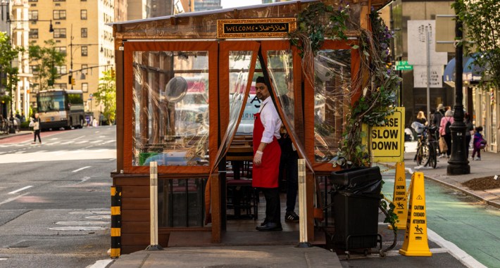 The Council passed a permanent outdoor dining program in August after 18 months of largely secret negotiations for how to replace the three-year temporary pandemic-era “restaurant shed” rules, but city lawmakers bowed to the parking class by restricting streeteries in the roadway to eight months out of the year, reverting to car storage over the winter, while sidewalk seating can remain year-round.