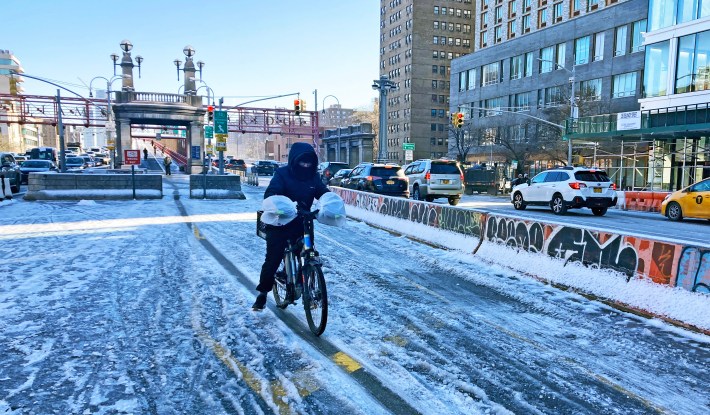 It’s not as if New Yorkers don’t want to ride just because it’s cold out. According to city data, more than 372,000 cyclists traversed the four East River spans in January, 2023. And despite the below-freezing temperatures and snow on Tuesday, more than 28,000 people took out a Citi Bike, according to the Lyft-owned company; and another 23,000 did on frigid Wednesday as of 3 p.m. — that’s on top of the more than 65,000 delivery workers in the five boroughs who brave its roads in rain and snow, and smoke.