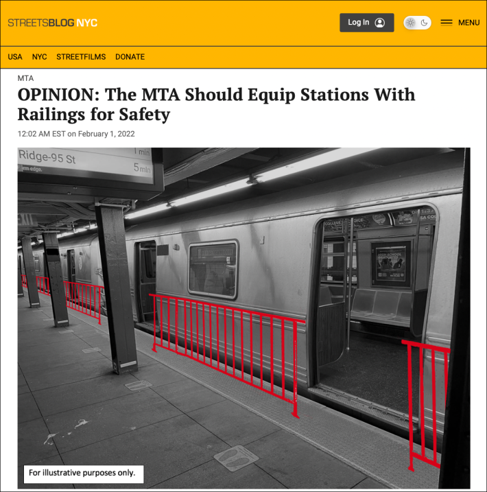 “This is a terrific move by the MTA,” “Gridlock” Sam Schwartz said in the MTA statement. “You could be sure I will be standing behind these barriers where ever they are provided.” (amNY and Gothamist also covered.)