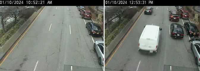 The camera, typically employed for traffic analysis, points at 345 Adams St. and gives a 24/7 window into rampant placard misuse and lies told by NYPD officers required to enforce the lane.
