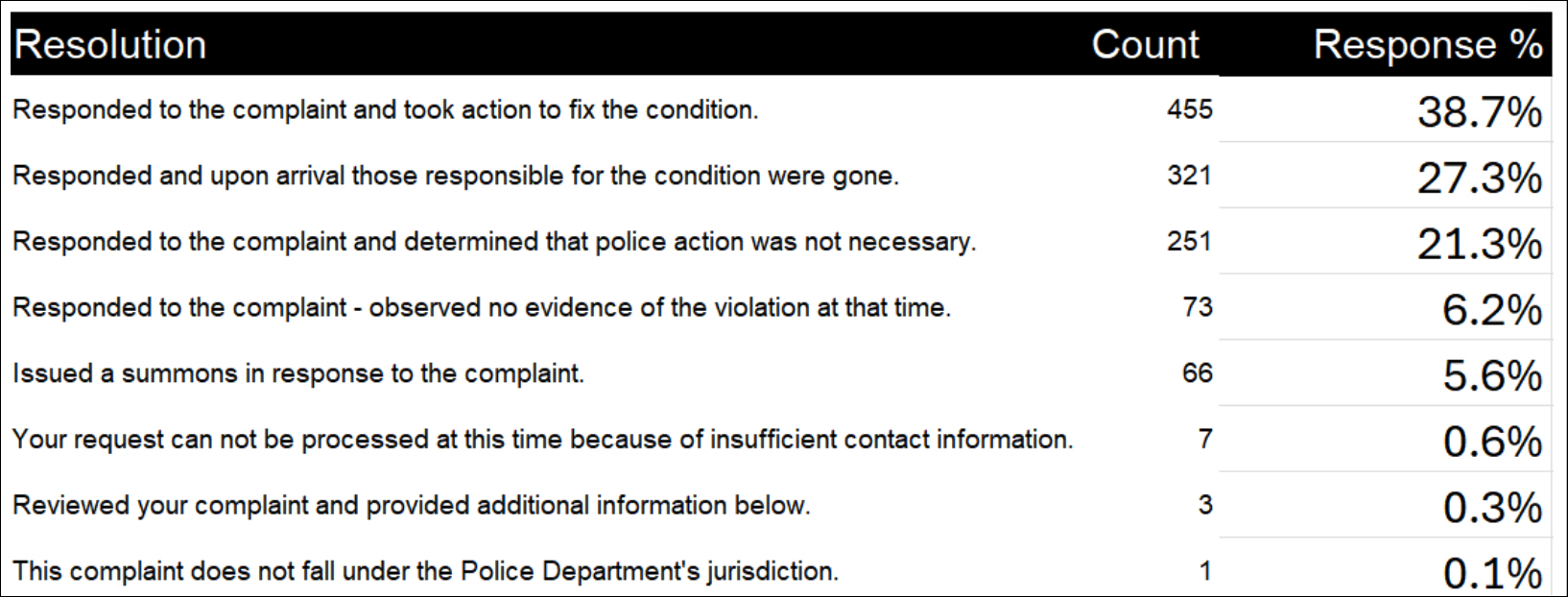 Since mid-November, I have used the camera to file 311 complaints for illegal bike lane parking — and then utilized the footage to document the police response. Between Nov. 15 and Jan. 25, I filed 54 complaints. At first, I hoped to see cops from the 84th Precinct make a good faith effort to respond, but that turned out to be wishful thinking. I encouraged other to file complaints as well. Overall, various individuals filed 1,177 complaints over the time period in question.