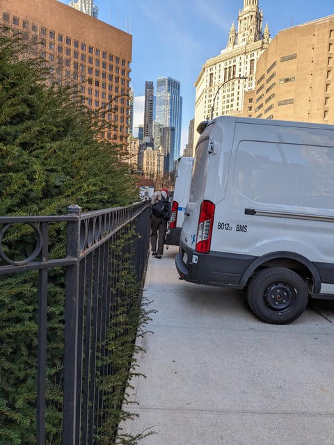 “Our residents have difficulty with something as simple as walking down the street and riding their bikes – and it’s especially difficult for those in wheelchairs and with strollers,” said Nick Stabile, a co-founder of the Park Row Alliance. “We hope that NYPD can find another solution to their operational challenges that doesn’t involve blocking sidewalks and bike lanes.”