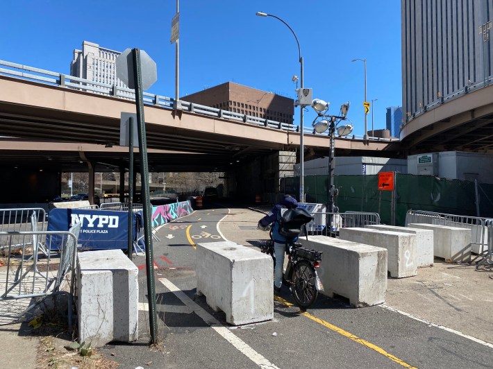 City officials closed off the street to most private car traffic nearly a quarter-century ago following September 11, since it runs below a bridge that connects to NYPD headquarters at One Police Plaza.