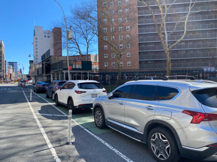 Cops Steal Park Row Bike Lanes to Store Cars, Equipment