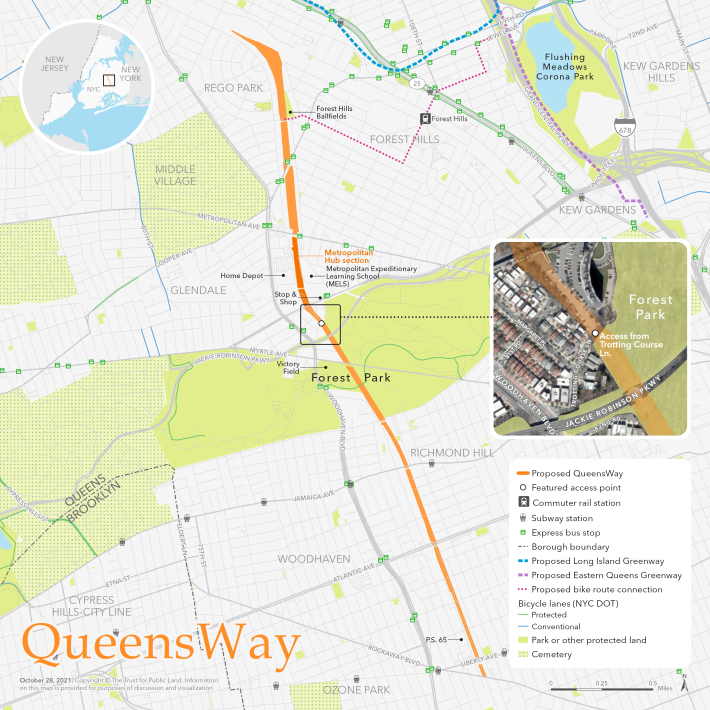 The federal grant marks the second big-money infusion into the park proposal, following Mayor Adams’s announcement in 2022 of $35 million for an environmental review and construction of first phase in a stretch between Metropolitan Avenue and Union Turnpike, known as the Metropolitan Hub.