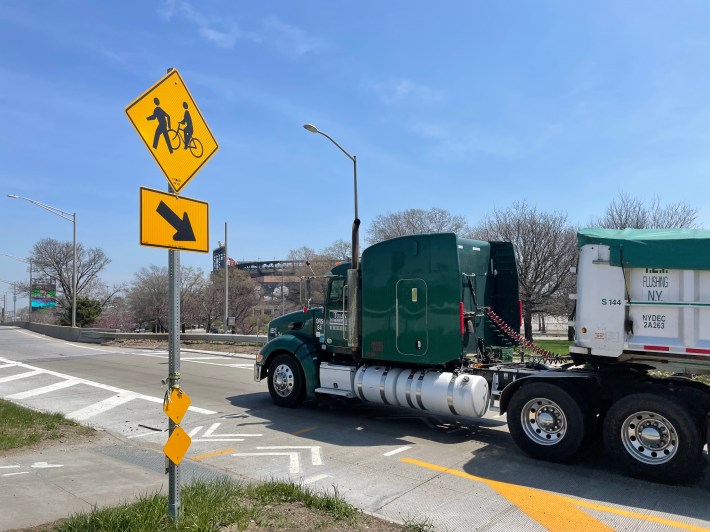 There’s a narrow pedestrian and cycling path on Northern when the road crosses over Flushing Bay, but your best bet to get to it is going down the industrial-tinged Prince Street. Not an impossible task, but just not something for novice cyclists, or parents with their baseball-loving kids, to deal with.