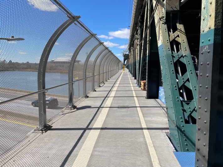 … Until that is, you get to the 10-foot wide pedestrian/cyclist path on the Roosevelt Avenue bridge, which is extremely pleasant for the stretch that you’re on it.