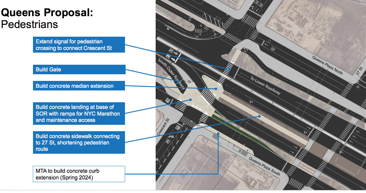 The Department of Transportation, which has delayed the project for more than a year, showed off its designs to Manhattan Community Boards 6 and 8, and Queens Community Board 2 last week — and the big winners are pedestrians and cyclists.