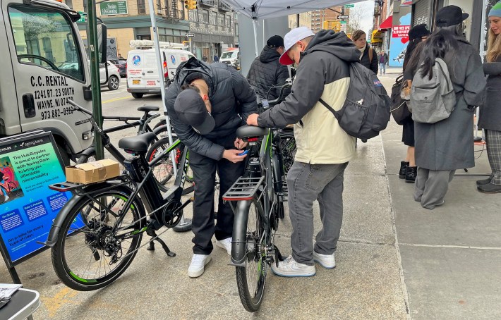 At the event, deliveristas dropped off their old bikes and received Fly-11 Pro e-bike models with UL-2849 certified batteries that can provide eight hours of charge and are about as likely to catch fire as a cell phone (bike shop operators recommended charging every four to five hours and having an extra battery you can sub instead).