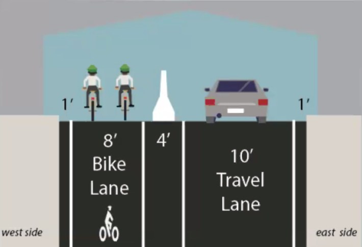 “[It’s] really difficult on a traditional bicycle, and to have cars whiz by on either side of you is very scary,” said committee member Larry Scheyer, of the 42nd Street approach.