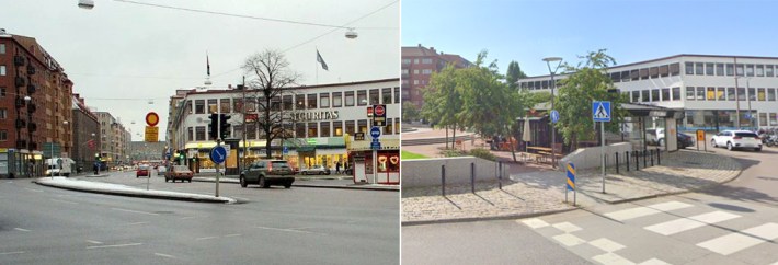 In Stockholm, many roads in the commercial district have been pedestrianized, as Streetfilms shows in this short clip: