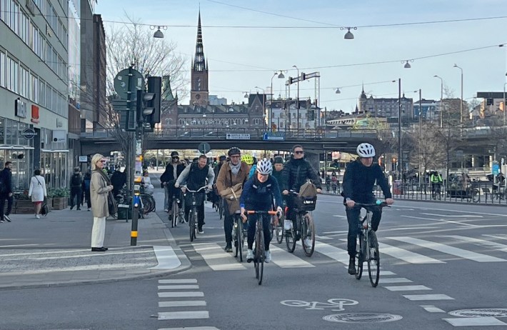 Stockholm residents told me the same thing: air quality is better, traffic is down much more than in Gothenburg, new bike lanes have been installed, buses move faster and road crashes are down. In a “bad year,” the head of the department of transportation told me, about eight residents of Stockholm, population 984,000, die in crashes, which would be the equivalent of roughly 80 New Yorkers dying.