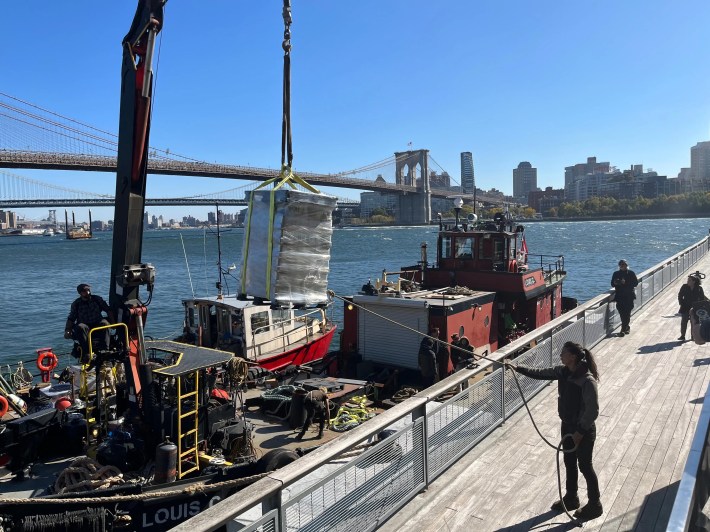 EDC manages the effort, dubbed “blue highways.” The quasi-public city corporation plans to install flat top barges to stage cargo at the six East River landings, where small vans and eventually e-cargo bikes could transport the goods for the “last mile,” thereby reducing the number of polluting big rigs on the city’s streets.