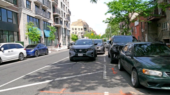 South Williamsburg is the land of double-parked cars. Streets within the Hasidic enclave are crowded with large vehicles, school buses, and pedestrians, creating a dangerous situation for those walking or riding a bike. Many in the Satmar Hasidic community have large families, so there are more kids walking around the car-filled streets, and sidewalks — which often serve as impromptu parking for a minivan, or six.