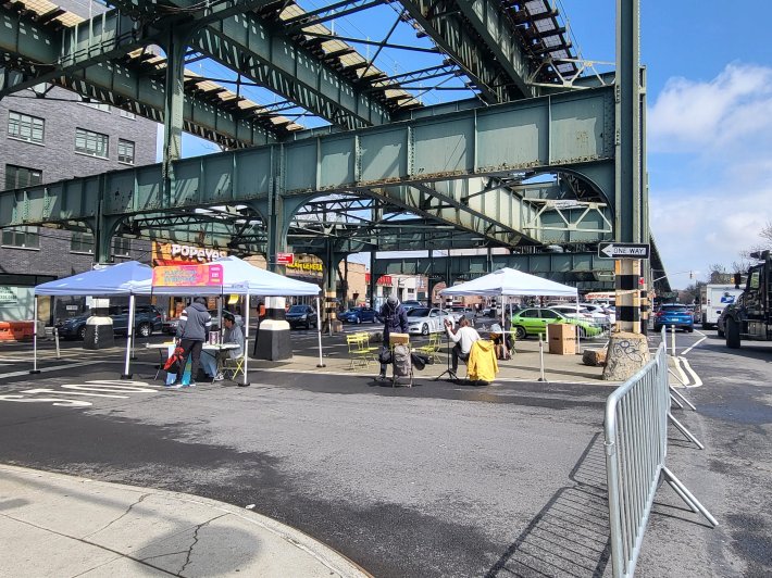 The city will close off a small slice of E. 212nd Street beneath the elevated tracks along White Plains Road in Williamsbridge for six hours each Saturday starting next month. The space sits between two forks of White Plains Road that drivers usually use to make U-turns under the elevated subway tracks.
