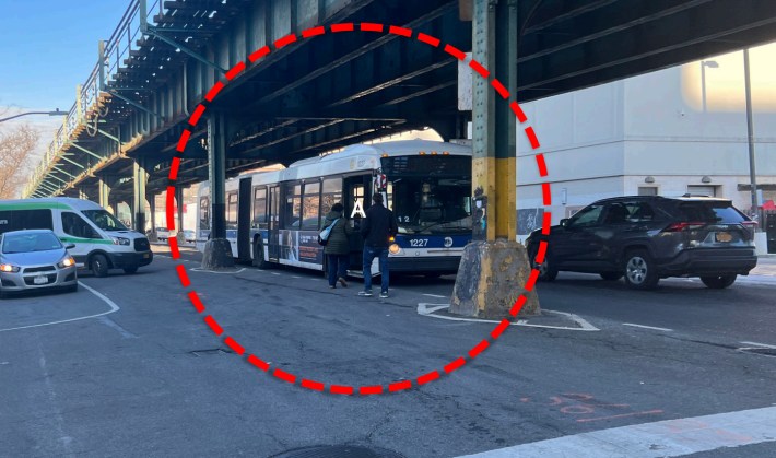 Riders on the Bx39 and BxM11 must board and get off in the middle of the roadway because the columns block buses from pulling up to the sidewalk. That means bus operators can’t lower their ramps for people in wheelchairs, pushing strollers, or with shopping carts — a violation of the Americans with Disabilities Act, officials said.