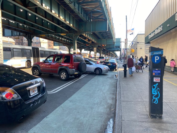 The first phase north of Burke Avenue led to a 15 percent drop in injuries and a 10 percent increase in cycling, according to DOT. But that portion is still littered with illegal parking, Streetsblog found during a visit to the area last year.