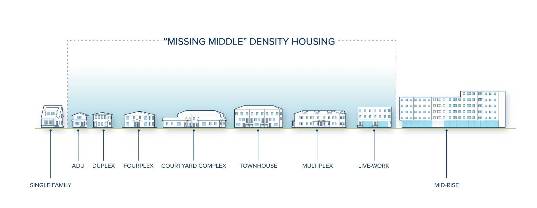 One of the main goals of City of Yes is to re-introduce the “missing middle” housing to R1-R5 districts by allowing bigger buildings near transit, mixed use town-center zoning, accessory dwelling units, and getting rid of parking mandates.