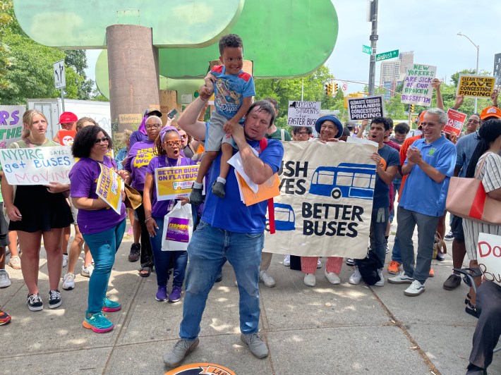 “Bus riders are sick of being ignored,” said Jolyse Race, a senior organizer at Riders Alliance. “We’re here today because buses are the lifeblood of our city, and it’s working class New Yorkers that are taking the bus are done being put last on our city streets.”