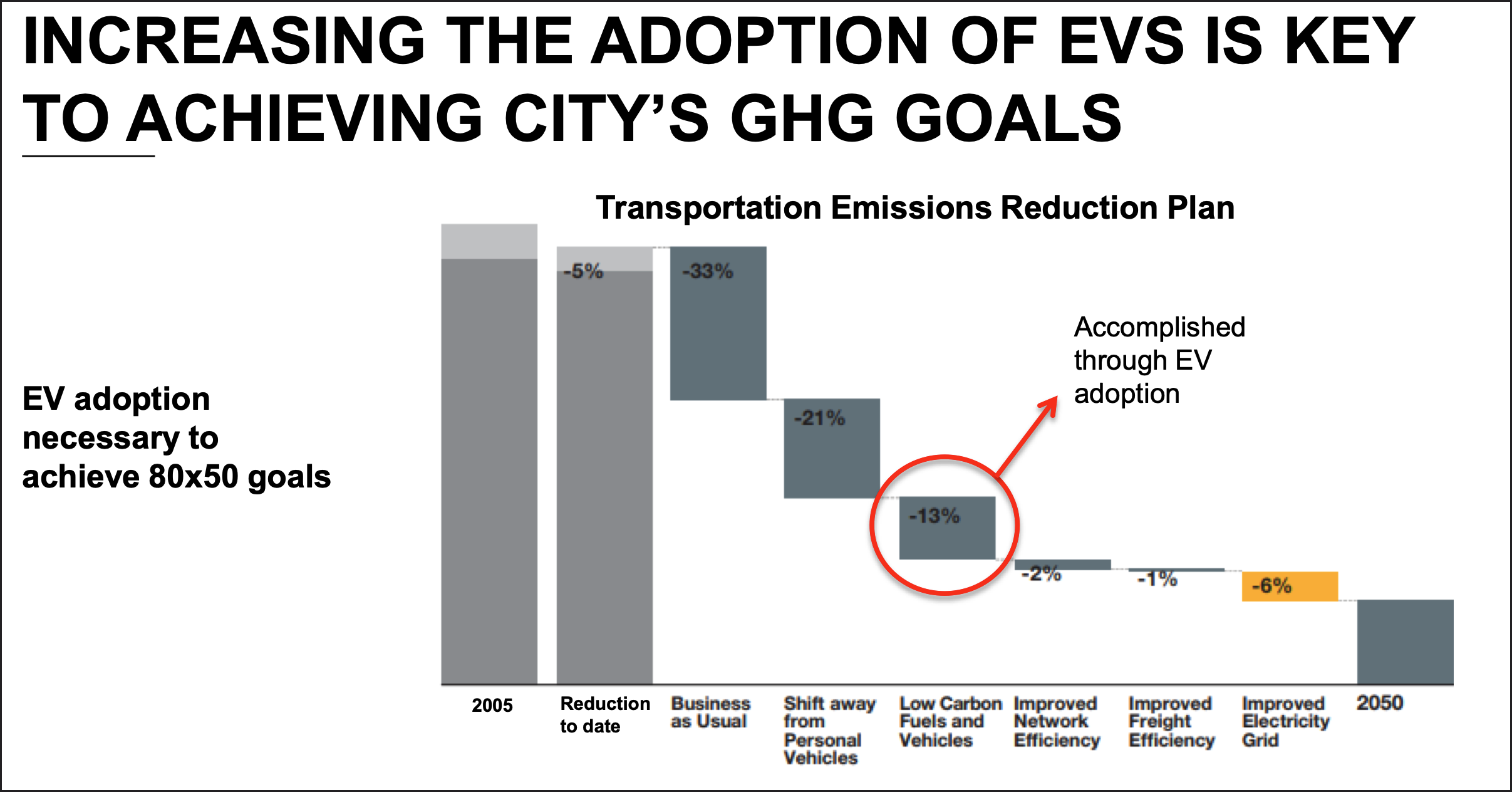 The agency predicts that its efforts to stimulate EV adoption will reduce emissions by 13 percent. But another 21-percent reduction in transportation emissions through a “shift away from personal vehicles.” (The agency declined to comment on how that will be accomplished outside of “business as usual.”)