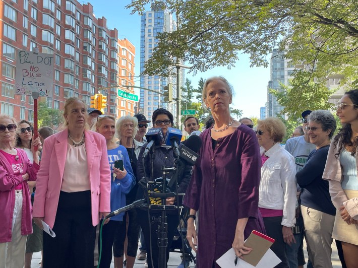 City Council Member Gale Brewer (D-Upper West Side) on Thursday put her considerable political weight behind an effort to stop a dedicated bus lane on 96th Street mostly outside of her district – cynically citing her past support for bus priority projects while rallying with NIMBYs who want their block cut from the badly needed project.