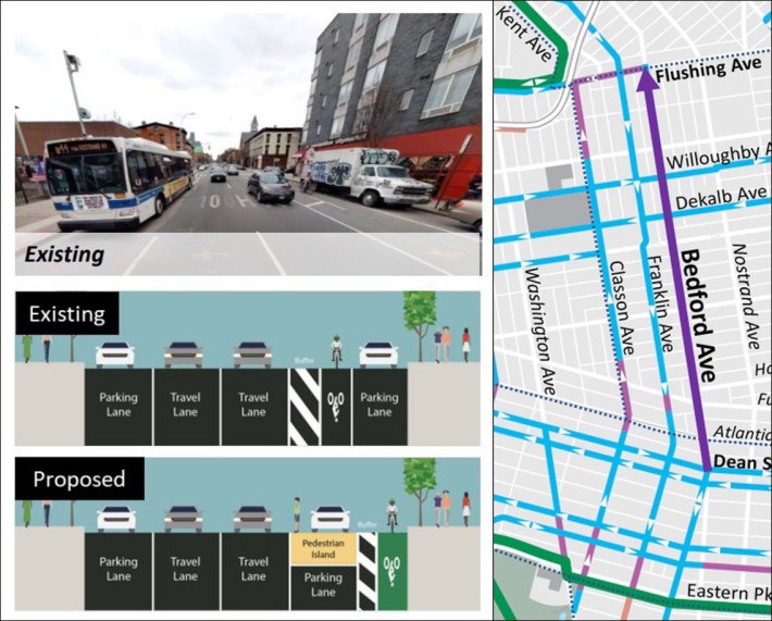 The project will also add loading zones along Bedford Avenue to keep curb access open to drivers, as well as painted pedestrian islands at intersection to increase visibility and reduce the distance needed to cross the street.