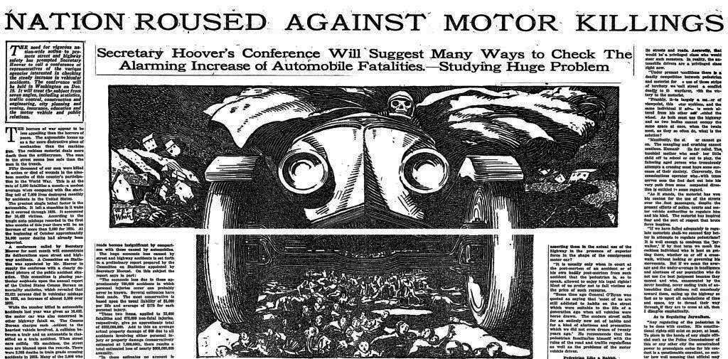As widely documented, car makers created the “crime” of “jaywalking” to insulate themselves and their product and their customers for blame for what the Times called “a huge problem.”