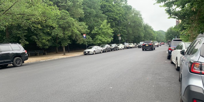 The city missed a huge opportunity to add a protected bike lane on Prospect Park Southwest when it repaved the wide roadway in 2022, as Streetsblog mentioned at the time: