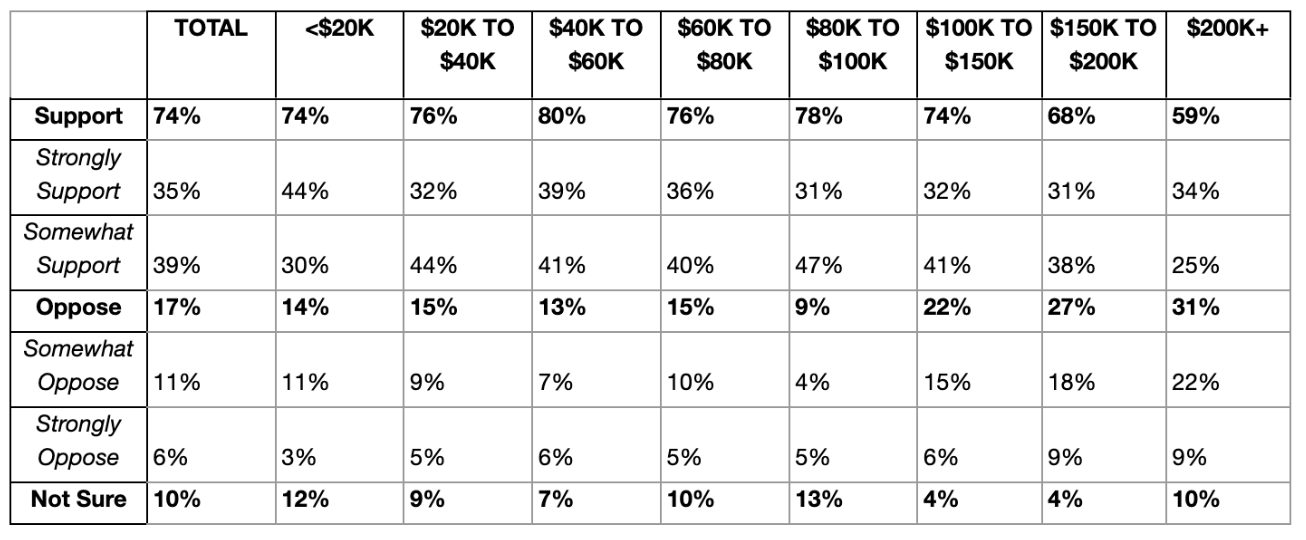Support dropped to a smaller majority of 68 percent among voters who make between $150,000 and $200,000 per year, and to 59 percent among those making over $200,000, the poll found. In other income brackets, the amount of support for eliminating the decades-old parking minimums ranged from 74 to 80 percent.