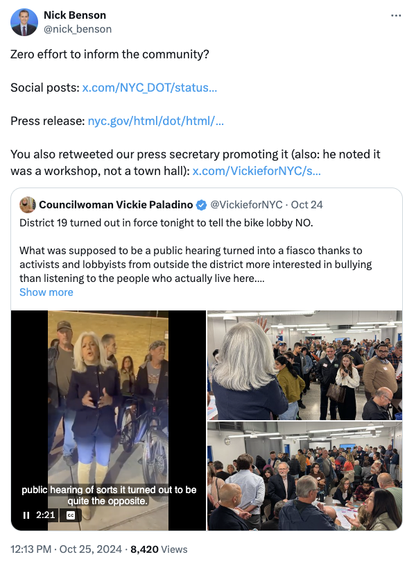 Paladino’s video was quote-tweeted by DOT Chief Communications Officer Nick Benson, pushing back on the insinuation that she was unaware of the meeting’s intended format.
