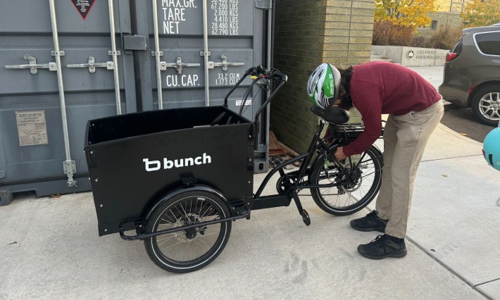Getting from the LIRR to the center isn’t ideal: You have to walk along the busy, multi-lane Northern Boulevard where drivers are merging on and off of the Cross Island Parkway. To fill the gap, Queens Bike Share offered a free cargo bike shuttle that Streetsblog used to get from the LIRR to the center, enjoying a bumpy ride along a route that has seen 51 crashes since the bike lane was installed, the vast majority of which involved motorists.