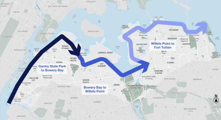 Parts of the Queens Waterfront Greenway already exist, but getting from one end to the other can be like a game of Frogger: Segments are scattered around the borough, and traversing the spaces between them can be dangerous for pedestrians and cyclists alike.