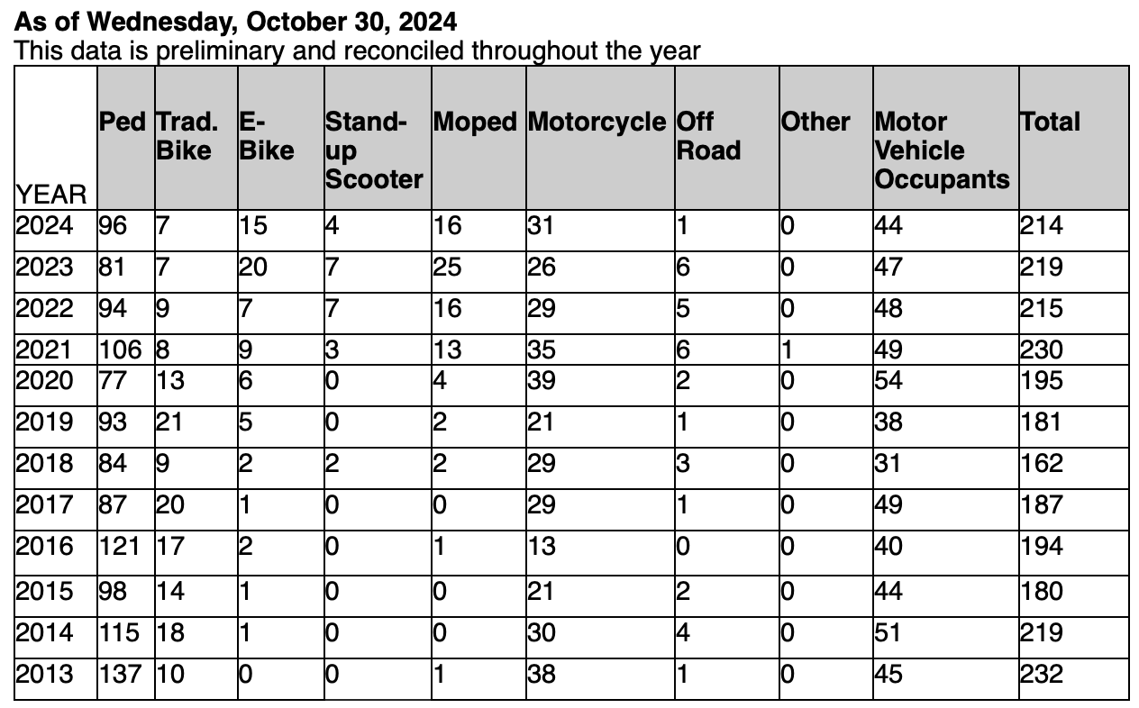 In addition, 91 pedestrians have been killed — a dramatic increase from the same period last year: