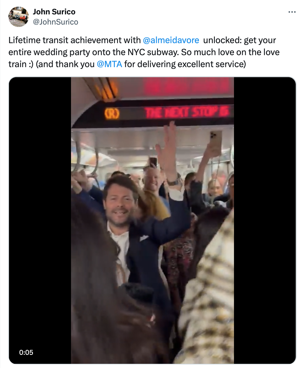 - And, finally, you gotta love this video of a wedding on the subway! (Via Twitter)