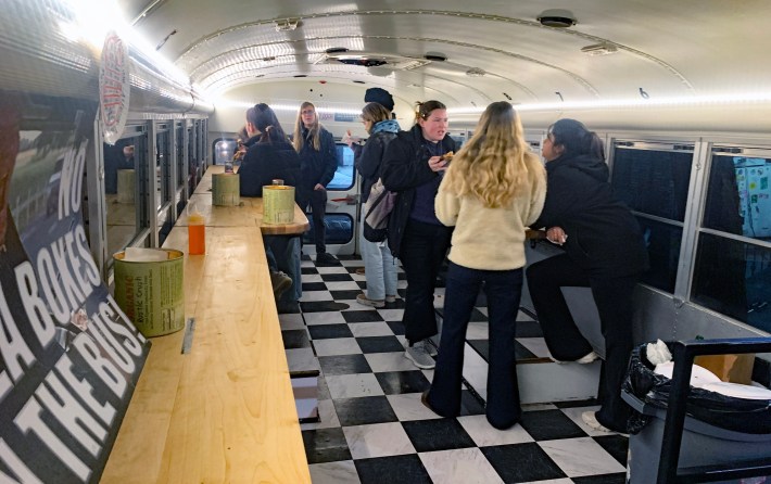 Pizzeria Deploys School Bus to Serve Customers During Winter Curbside Dining Ban