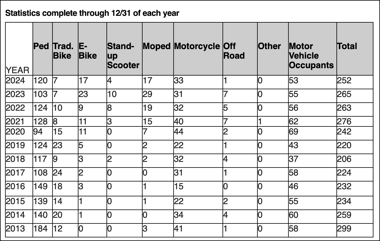 Here are the fatality statistics to which he was referring, which show an increase in pedestrian fatalities between 2023 and 2024 (DOT says 2023 was an outlier, and notes that the fatalities in 2024 were lower than 2022 and 2021):