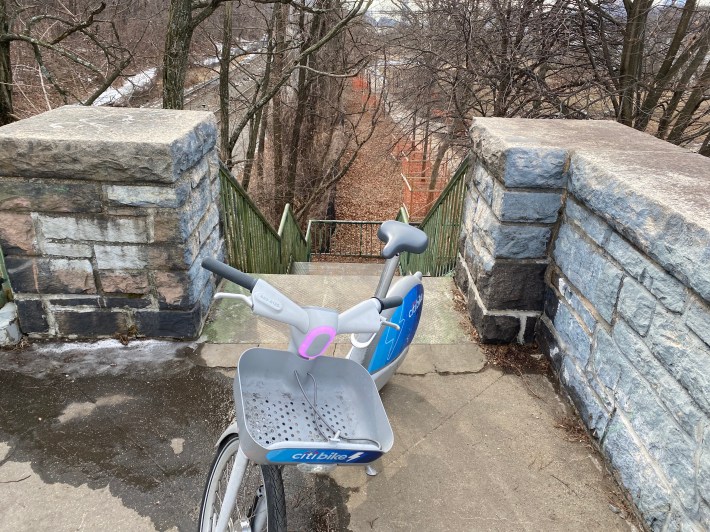 I was riding a heavy Citi Bike e-bike and it was incredibly difficult to lug it to the top, and I seriously considered turning back.