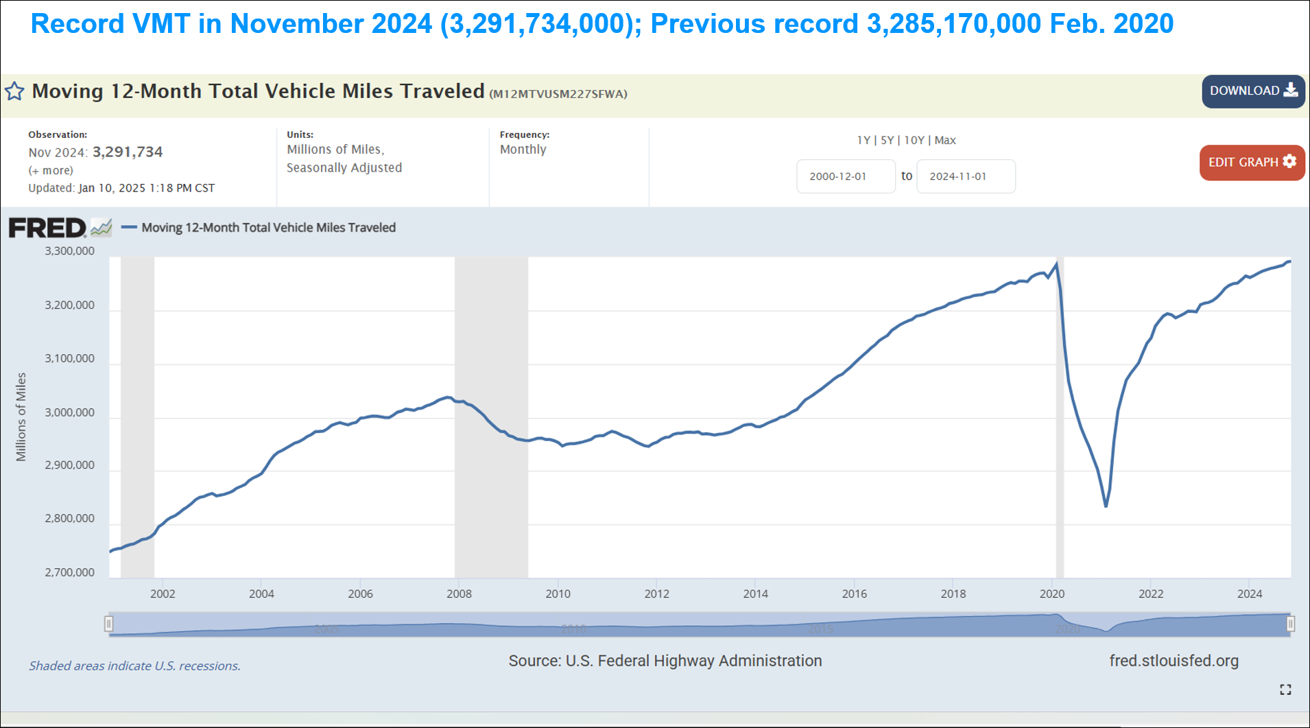What highways? The Times doesn’t say. And hasn’t traffic of all kind been on the rise nationwide since the depth of the pandemic, as the chart below shows? The Times didn’t bother looking at that fact (for all we know, congestion pricing is reducing the increase in traffic — as that 2-percent decrease in morning travel times might be suggesting).