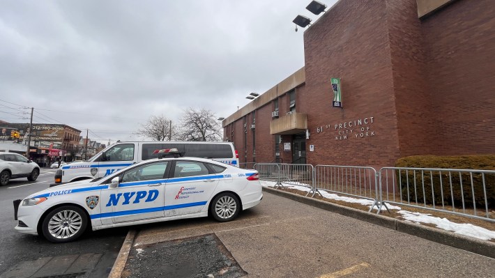 Most of the businesses within a few blocks of the site — including a Chase Bank, a McDonald’s, and a Turkish restaurant — have their own parking lots. The precinct has two designated parking lots, but cops still leave personal and police vehicles on the sidewalk.